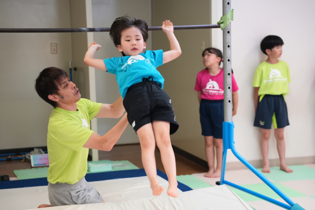 マット・跳び箱・鉄棒などを通して、「走る・跳ぶ・回る」といった全てのスポーツの基礎となる身体能力を養います。